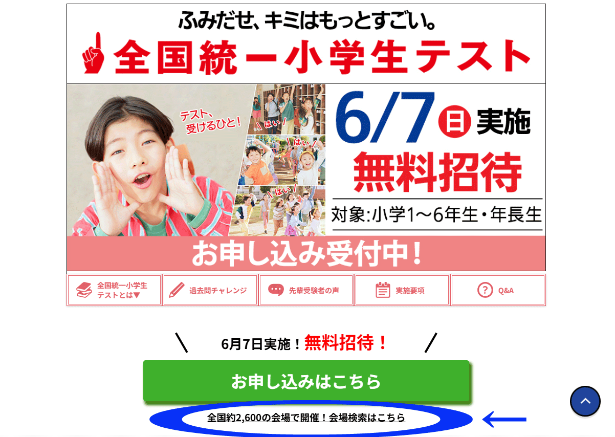 ◆「全国統一小学生テスト」の会場検索ページはこちら