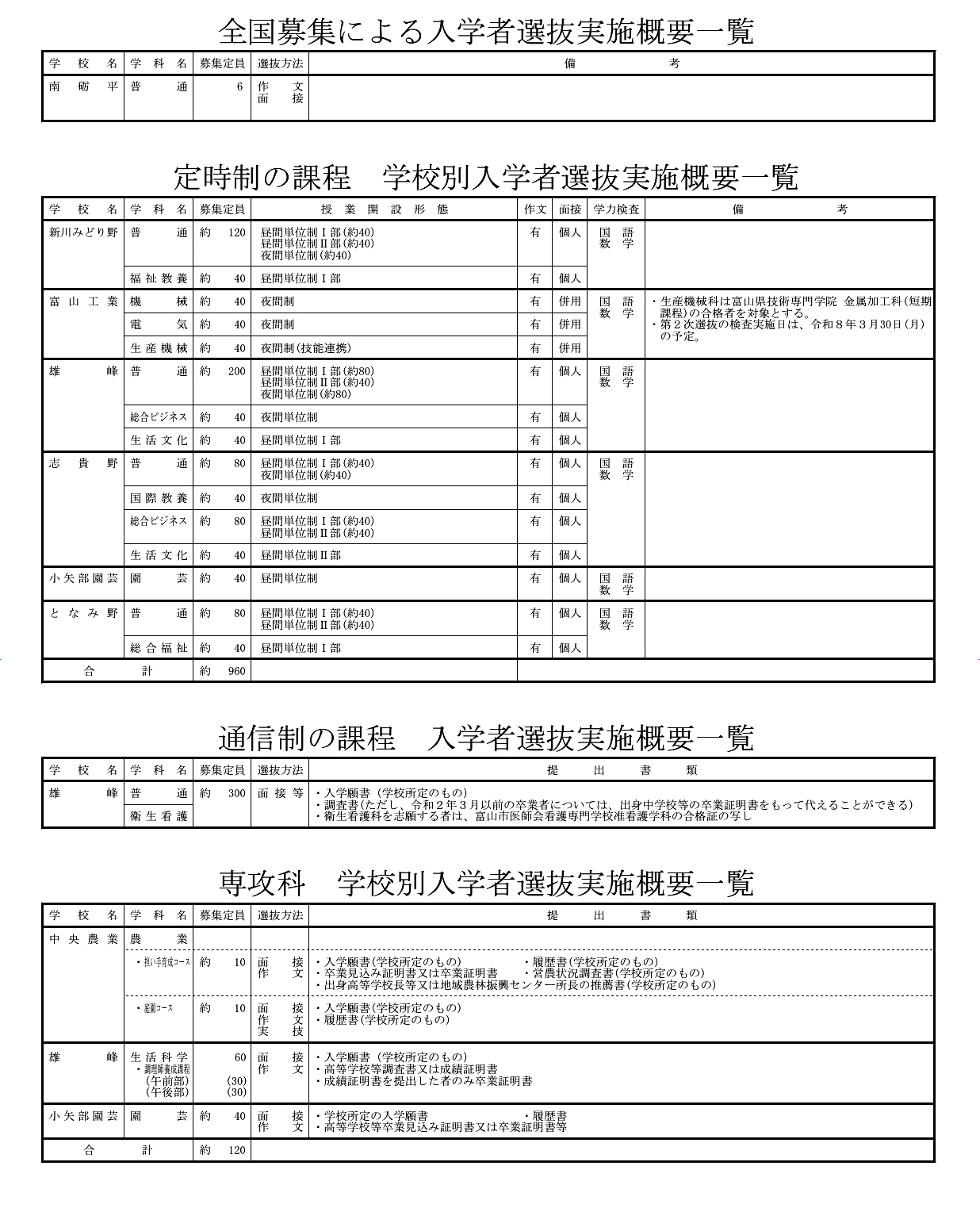 次に富山県教育委員会のwebサイトより、各校の志願資格など詳細をお伝えします。