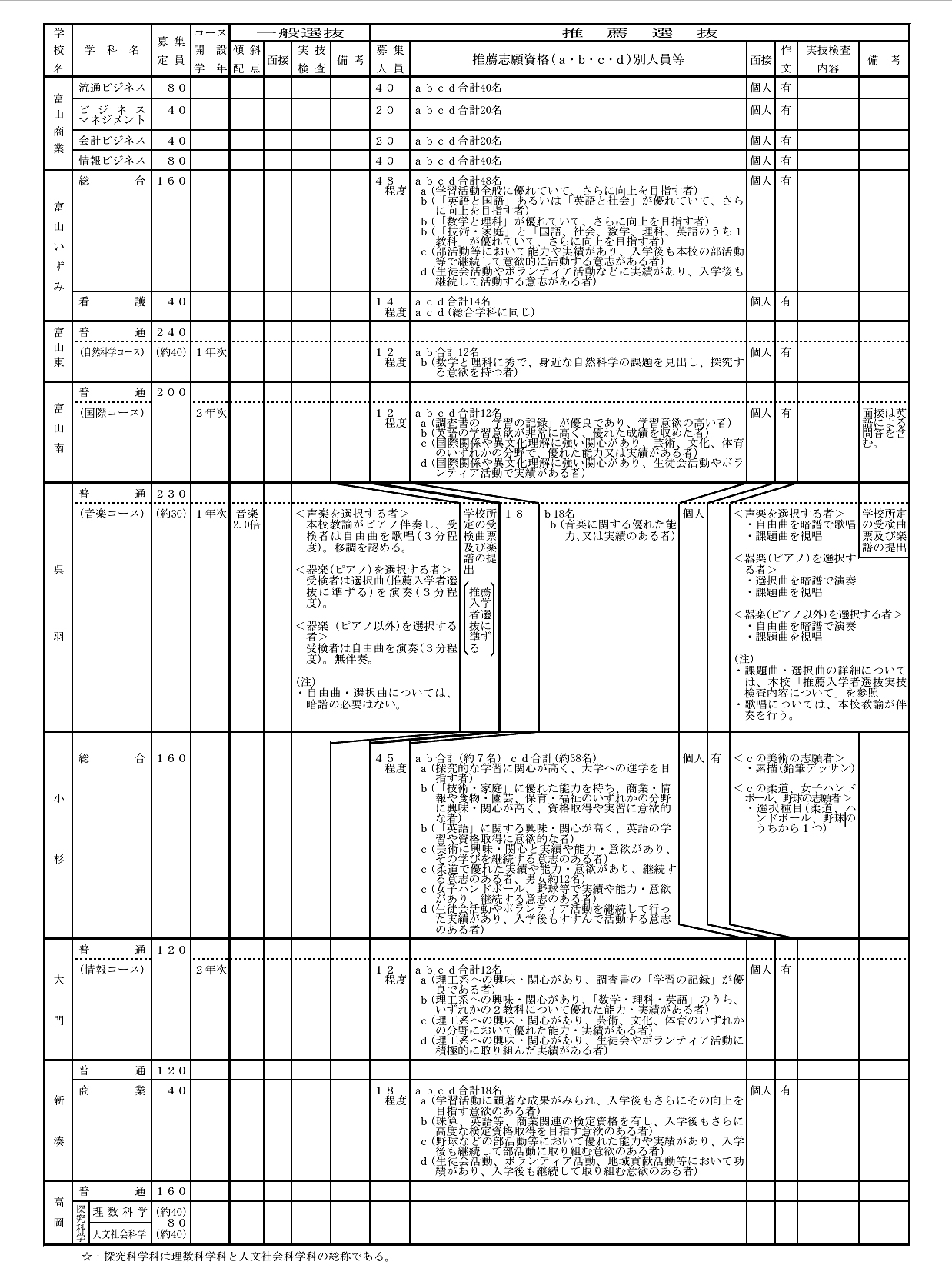 2026年(令和8年)の【富山県立高校】推薦入試の募集人数・志願資格・志願期間などをまとめてきました。