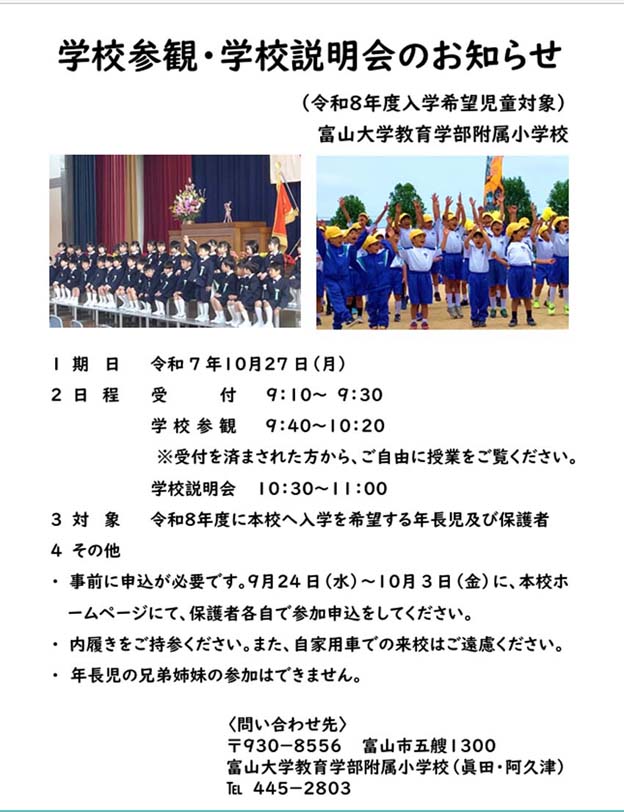 ※「富山大学教育学部附属小学校」公式Webサイトからお申し込みください。