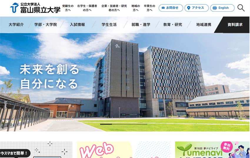 「富山県立大学射水キャンパス」の施設を、実際に見ることができますよ。