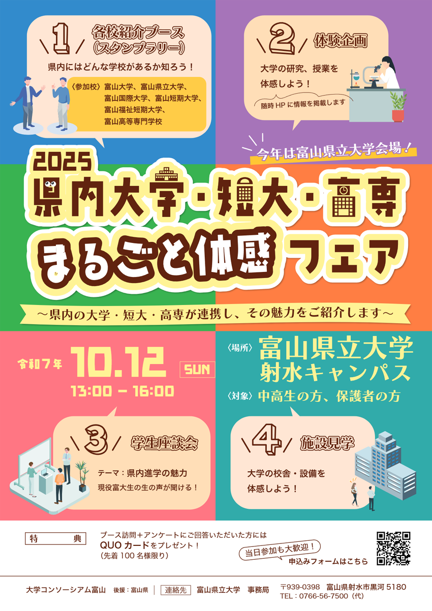 「2025 県内大学・短大・高専 まるごと体感フェア」は、富山県内の進学先を一度に知り、体験できる貴重な機会です。
