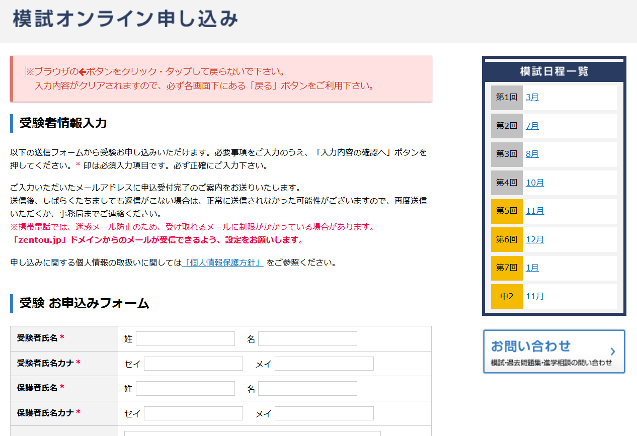 (4)「受験お申込フォーム」へ名前や住所など記入したら、確認画面で確認し、申し込み完了となります。