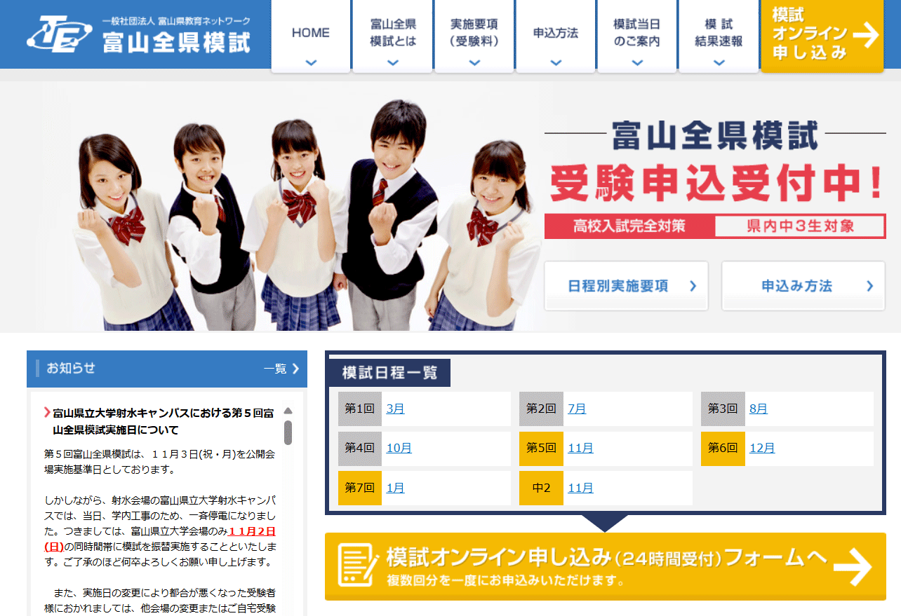また、富山県の最新入試情報も知ることができるのも嬉しいですね。