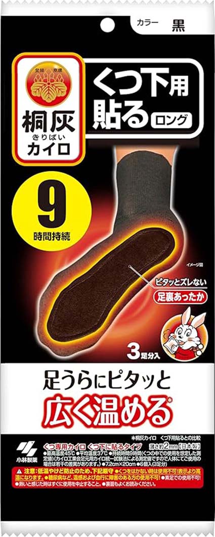 末端の冷えが気になる子どもには、小林製薬「くつ下用貼るカイロ ロング」がおすすめです。