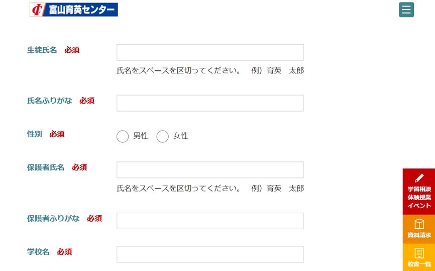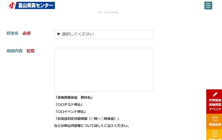【注意点2】「校舎名」は「富山本部校(幼児部)」を選択してください(講演会の申込み管理をしているため)。
