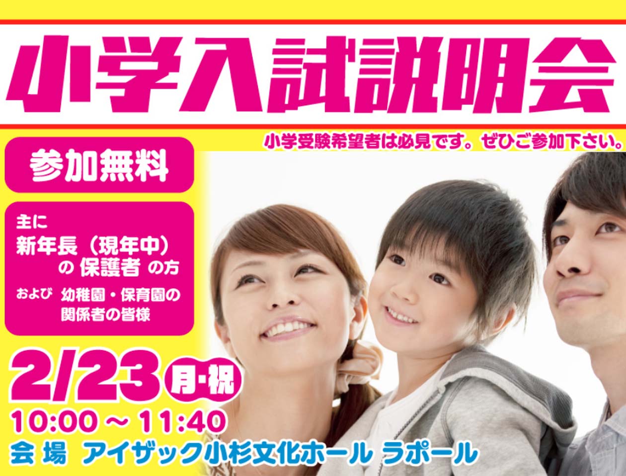 「小学入試説明会」の日時、場所、対象など詳細は以下です。
