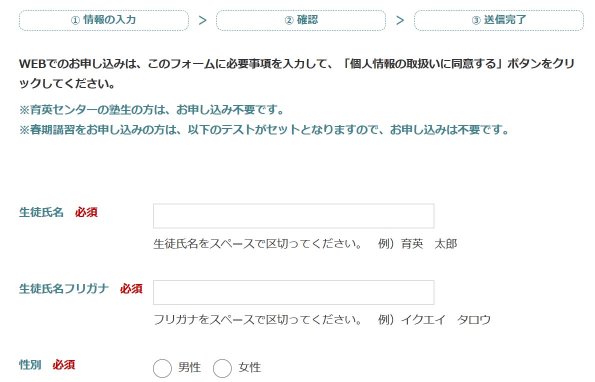 (1)育英センター公式webサイトの申し込みフォームへ移動します(画面を下にスクロールしてください)。