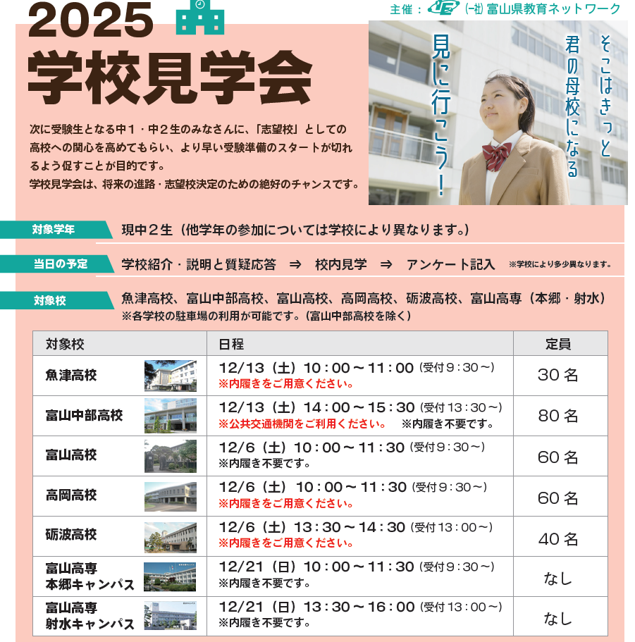 富山県教育ネットワーク主催の『学校見学会』を開催いたします!