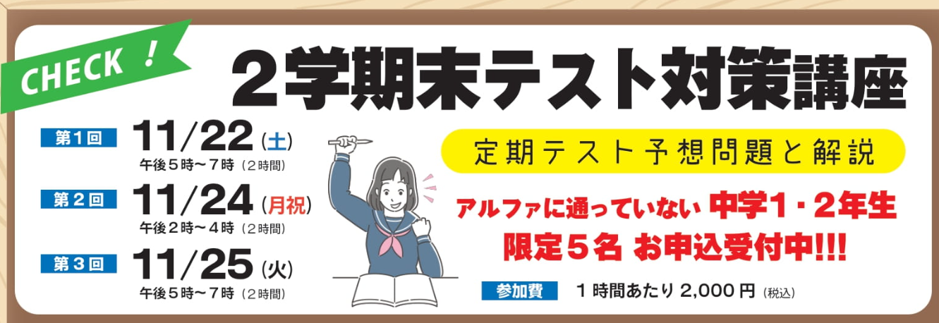 アルファに通っていない中学1・2年生も受講できる講座です(^^)/