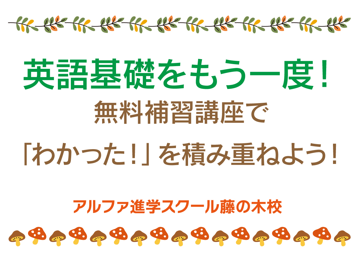 10月19日(日)、アルファ進学スクール藤の木校では中学生を対象に、英語の基礎講座(無料補講)を開講しました。