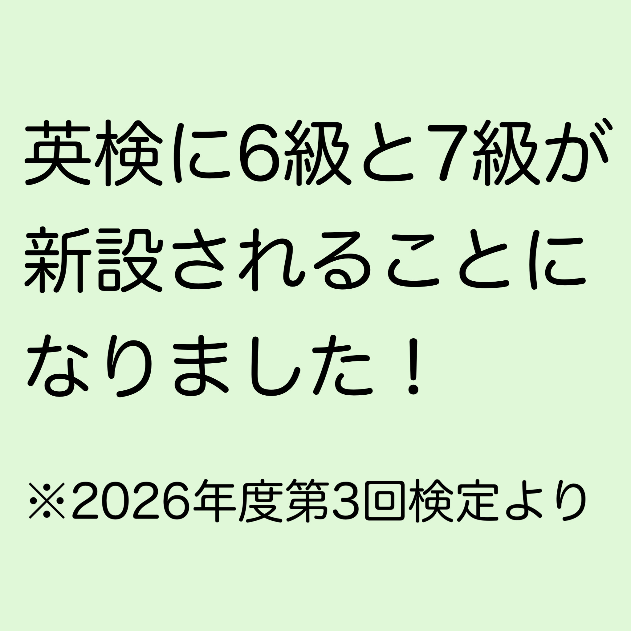 2026年度第3回検定から、英検(従来型)に6級と7級が新設されることになりました。