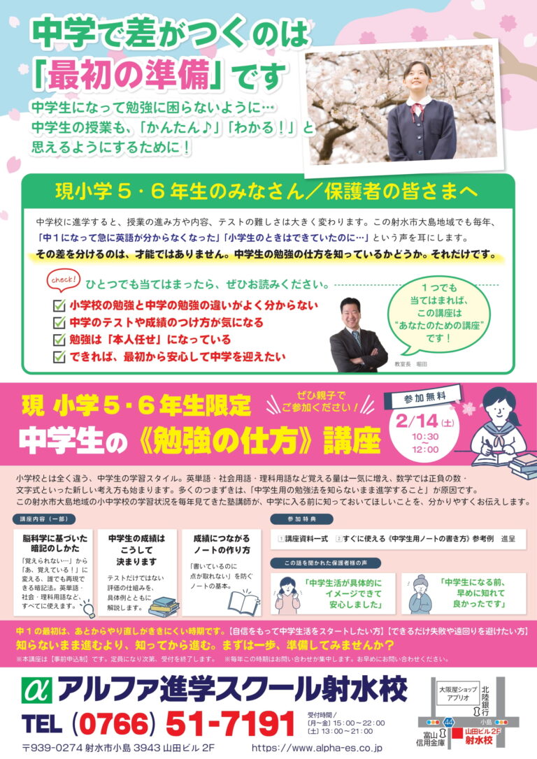 こんにちは!アルファ進学スクール射水校です(^^)/