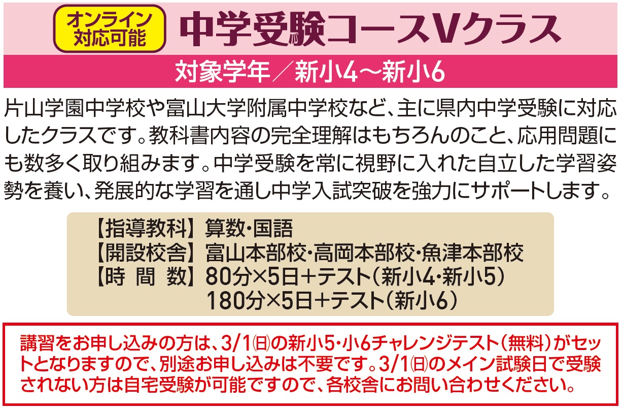 ➂【県内入試はおまかせ!】中学受験Vクラス