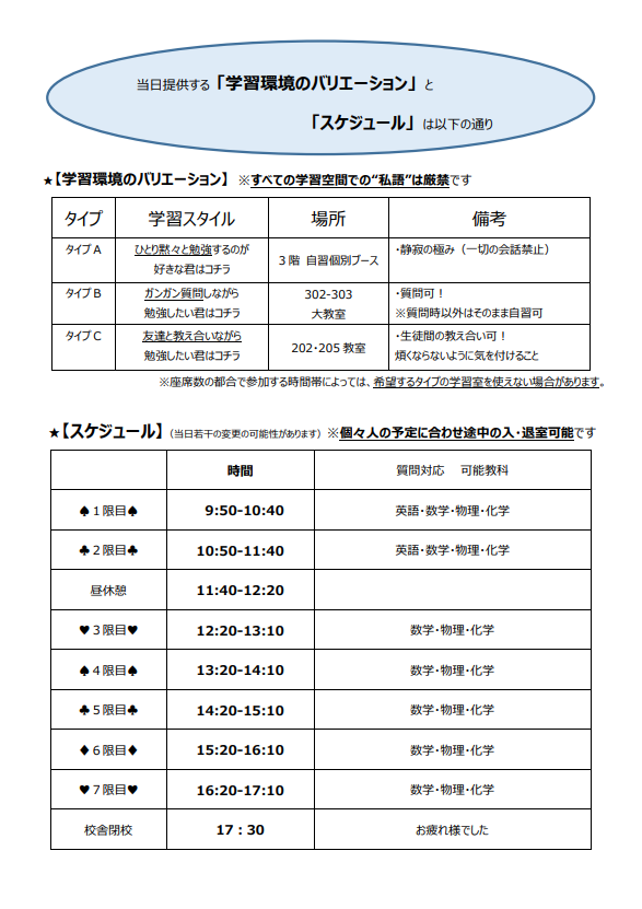 今回は外部生の方にも校舎を開放します!