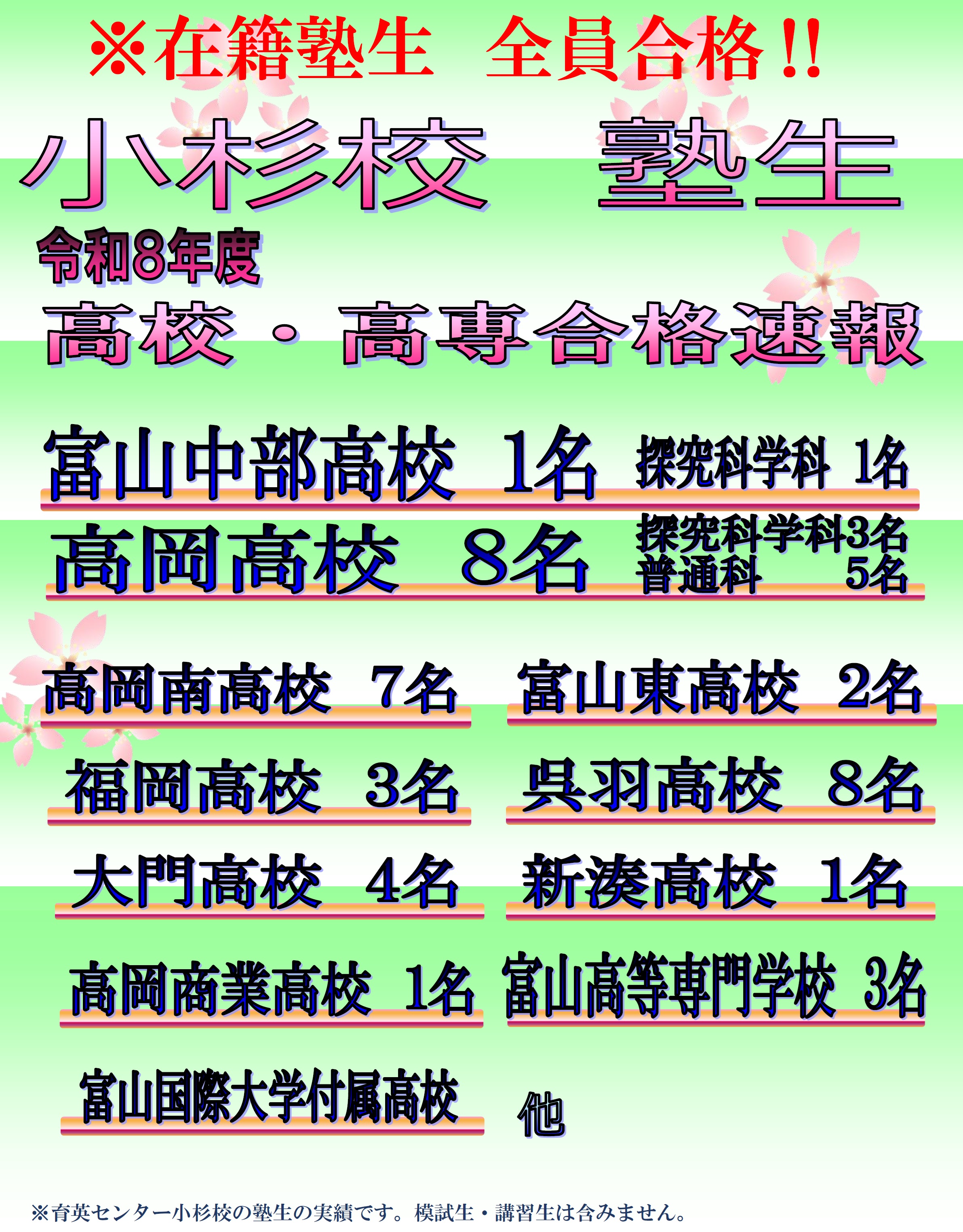 富山育英センター小杉校の塾生は全員合格‼