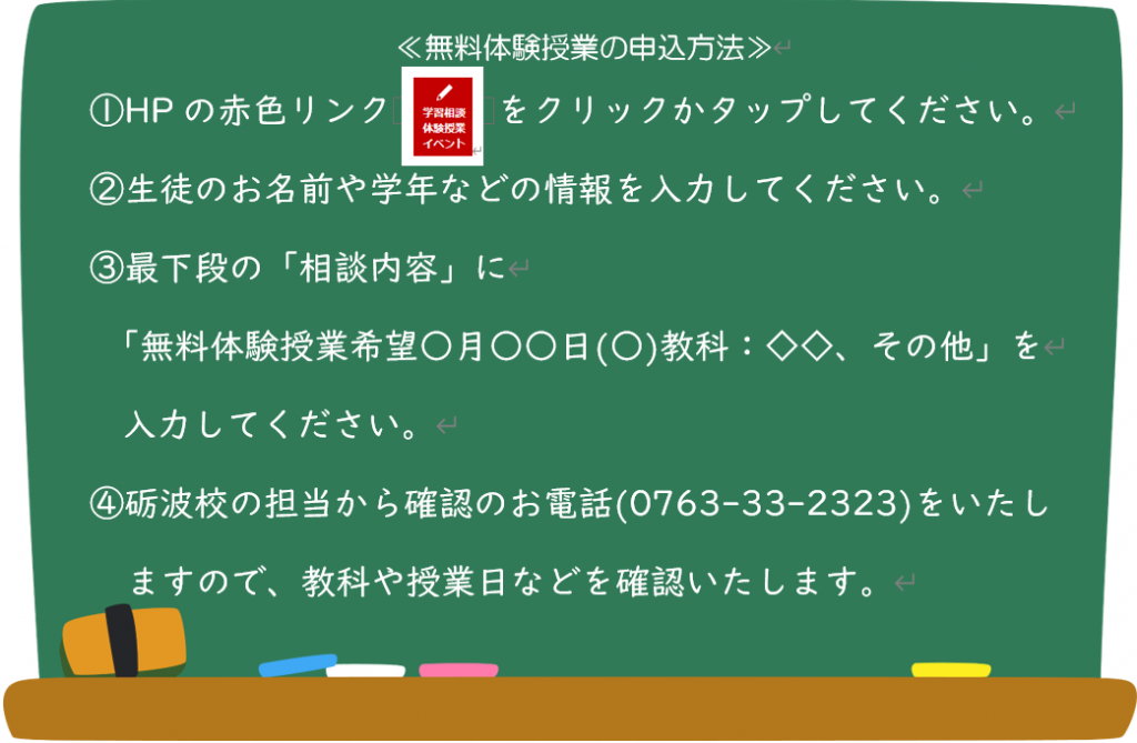 さて、砺波校では現在無料体験授業を実施中で、次回は5月の授業から体験スタートです。