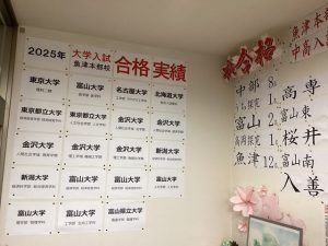合格実績 | 令和7年度 富山育英センターグループ 高校入試合格実績(全校舎合計) 富山中部高校 122 富山高校 89 高岡高校 94 魚津高校 53 砺波高校 29 富山東高校 76 呉羽高校 47 富山南高校 43 富山いずみ高校 23 富山北部高校 18 八尾高校 7 富山商業高校 5 富山工業高校 7 富山西高校 1 高岡南高校 45 福岡高校 20 大門高校 23 新湊高校 14 氷見高校 5 小杉高校 9 伏木高校 1 高岡工芸高校 7 高岡商業高校 3 桜井高校 16 滑川高校 16 入善高校 3 雄山高校 3 上市高校 1 魚津工業高校 1 南砺福野高校 15 石動高校 3 国立富山高専 40 令和7年度 大学入試合格実績(魚津本部校) 東京大学 理科二類 富山大学 医 医 名古屋大学 工 マテリアル工 北海道大学 総合入試理系 東京都立大学 人文社会 人文 東京都立大学 経済経営 金沢大学 人間社会 法 金沢大学 人間社会 学校教育 金沢大学 理工 機械 金沢大学 理工 物質化学 金沢大学 人間社会 経済 新潟大学 経済科 新潟大学 経済科 富山大学 工 生命工 富山大学 経済 経済経営 富山大学 経済 経済経営 富山大学 経済 経済経営 富山県立大学 看護 看護 富山大学 人文 人文 富山大学 理 物理 |