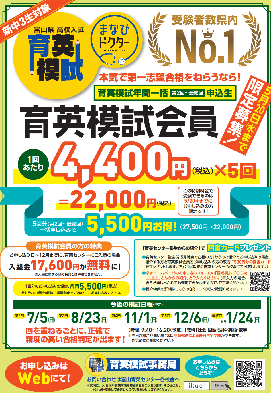 現在5/20(水)までの間で育英模試会員を募集中です。